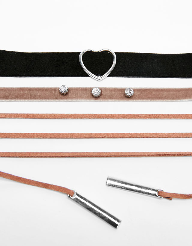 Set de 3 chokers .Los chokers son collares que van pegados al cuello y a mí me gustan mucho, los chokers se llevan mucho hoy en día.